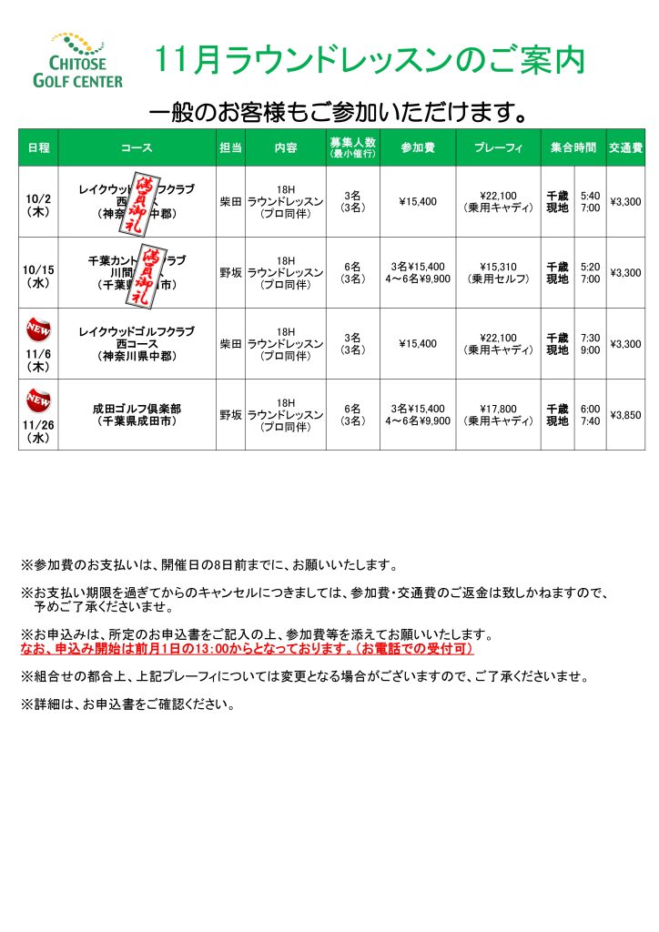 11月ラウンドレッスン会ご案内