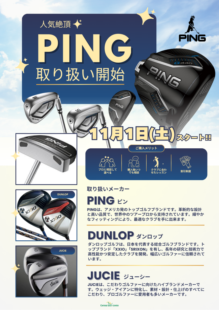 「PING」「DUNLOP」「JUCIE」11月1日取り扱い開始!!11月はフィッティング会も開催★