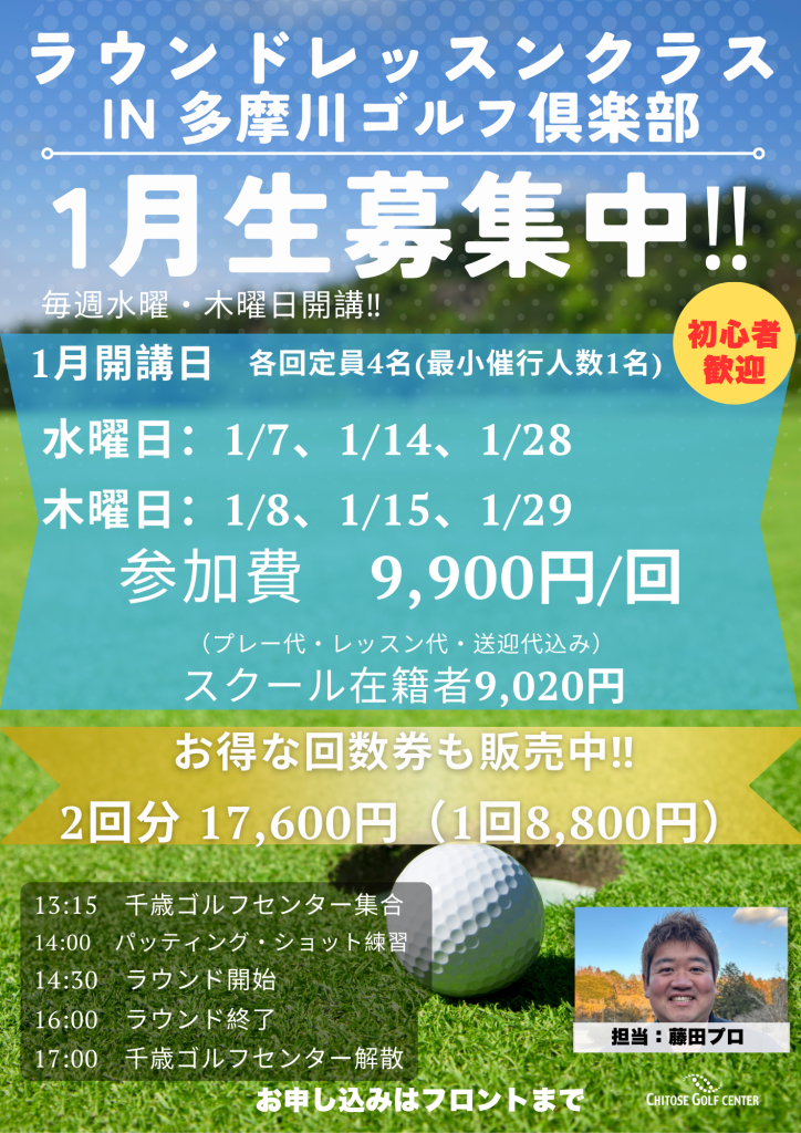 トップページ > ニュース > イベント募集 > ラウンドレッスン募集 > 1月多摩川ラウンドレッスン会募集開始‼