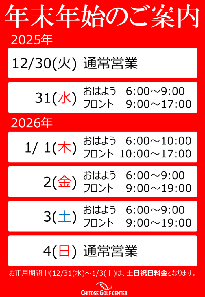 年末年始の営業のお知らせ