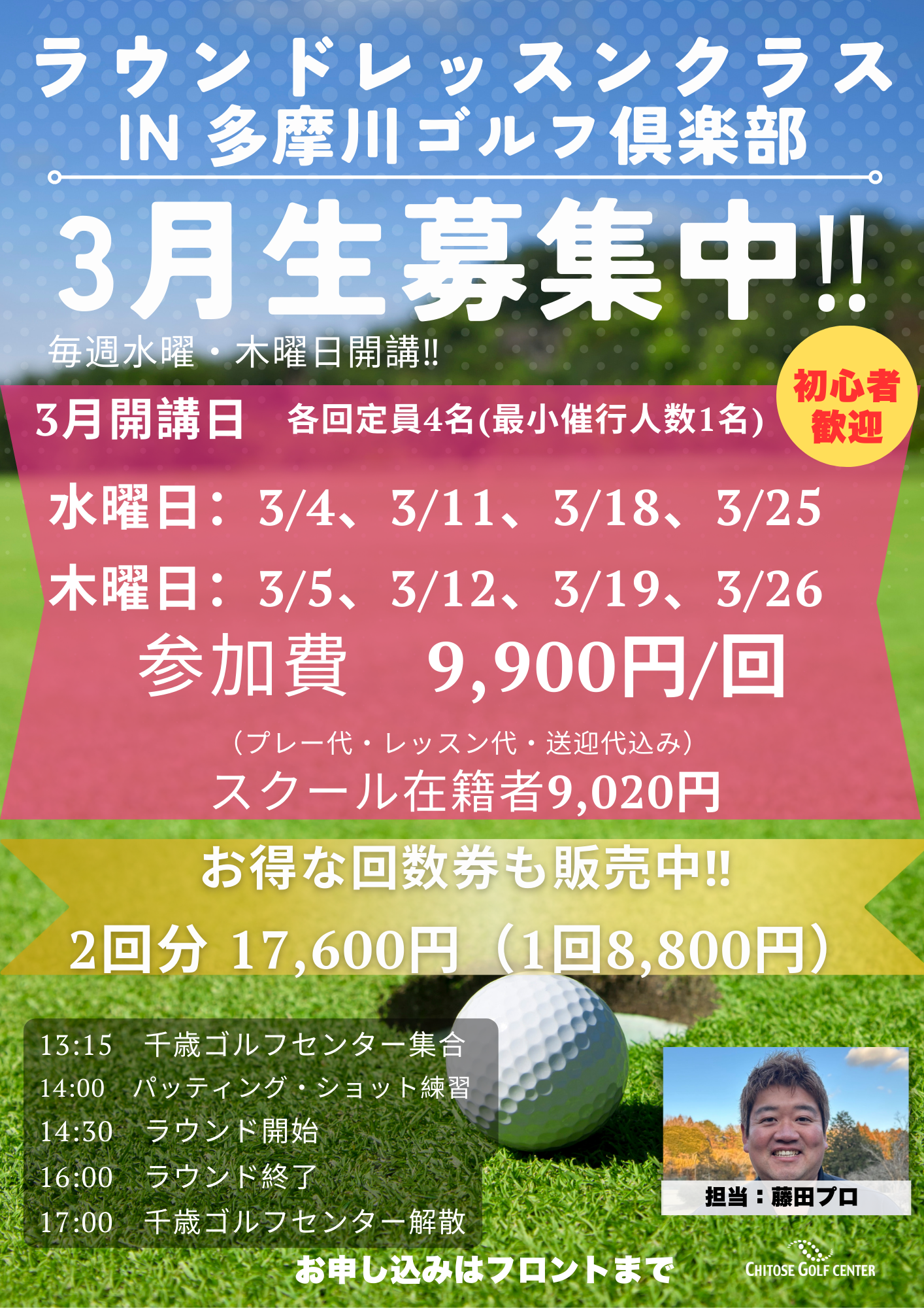 3月多摩川ラウンドレッスン会募集開始‼