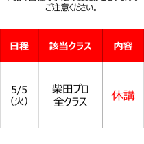 5月スクール休講のお知らせ